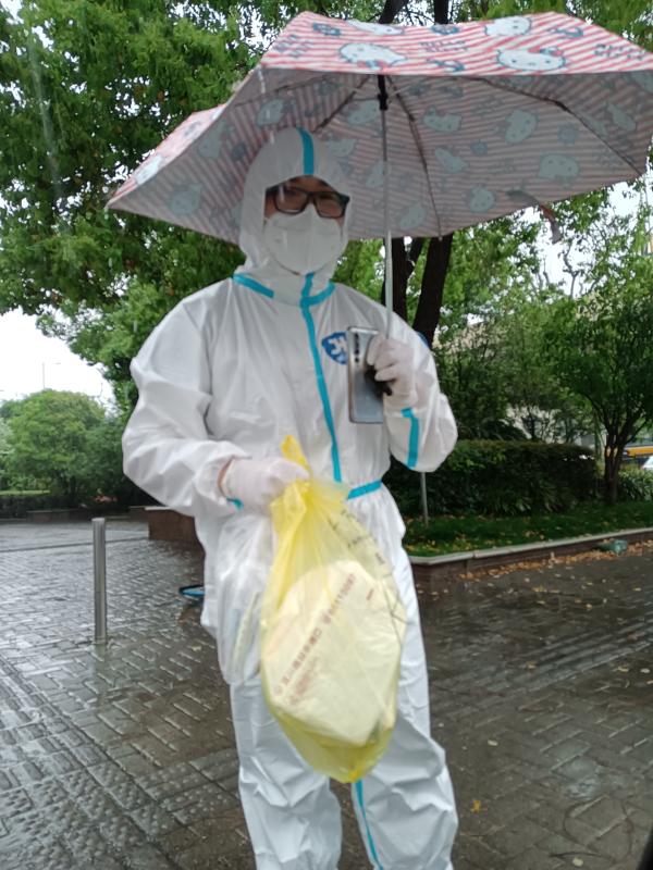有一次,为了给封控楼里的残疾住户配来急需药品,虽然已连续高强度组织工作多日,王新亚还是冒着滂沱大雨,开车去第十人民医院配药,让住户很感激。