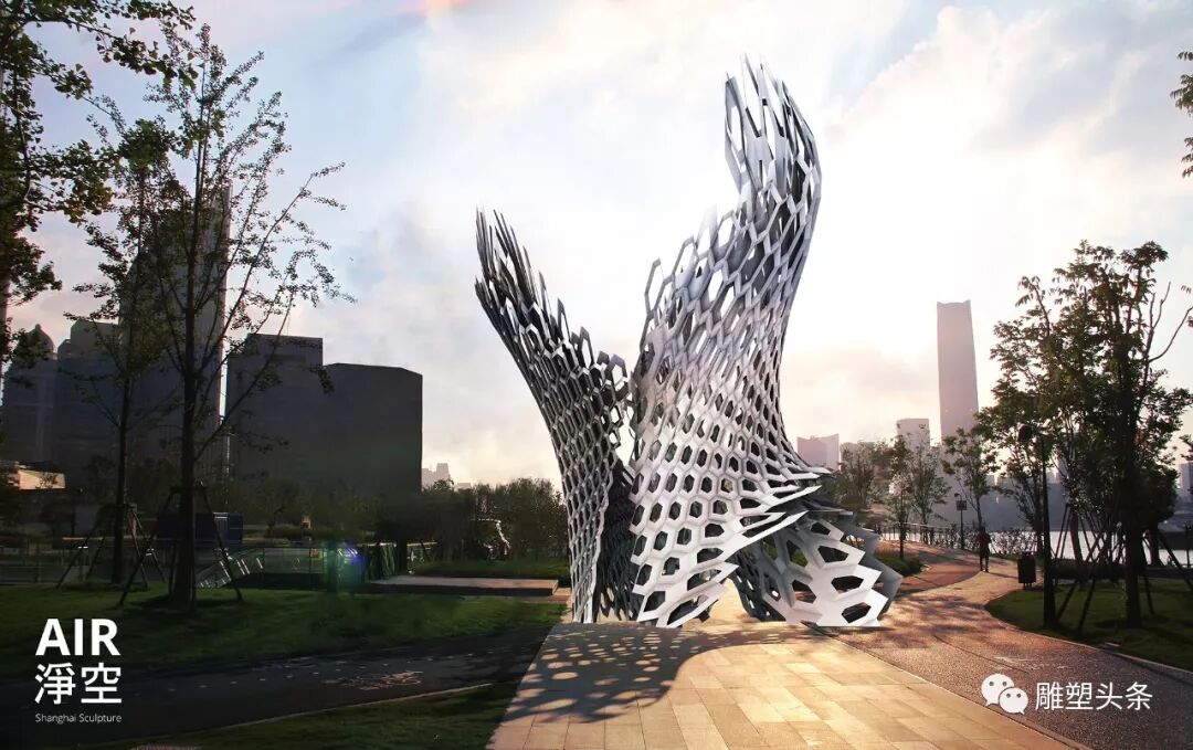 作品通透的视角是让公众瞬间进入艺术的气场和视角提供了可能,同时也是作者本身要传达对公共艺术的一种理解和态度,这次作品所表达的意境和观念和上次递交的效果图接近,所不同的是为了达到作品的牢固性和抗风性,设计者参考黄浦江走势形态得到灵感,利用S形的形态使雕塑不管从意义上、从形态上、从牢固程度上都有一定的提升。