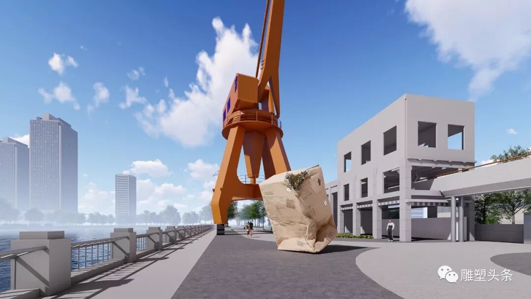 结合民生码头现场保留的塔吊,雕塑以充满想象力的、超级写实风格的造型,创造性地呈现该区域特殊的历史缘革和人文余脉。