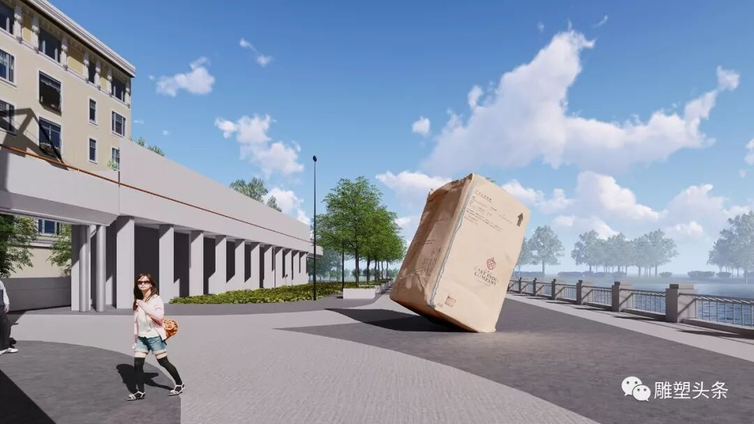 倾斜而立的包装箱(货物)雕塑既充满视觉的惊奇感,又能与场地的现状和历史建立自然而令人信服的联系,成为一组承载上海开埠文化的历史纪念碑。