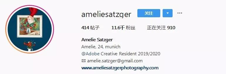 Amelie Satzger1995年出生于瑞典慕尼黑。Satzger在2012年开始做模特,自2014年以来,她一直以惊人的速度向公众展示自己的照片 —— 就像几乎所有年轻的摄影记者一样 —— 利用照片到博客和社交媒体。