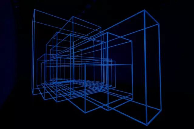 此次还展览了音乐家试著锻造既存体会科学仪器的内部空间经典作品。经典作品《呼吸的房间IV [RIO]》由若干可以发光的内部空间框架所组成,这些具有相同内部空间体积的框架向不同的方向延展,构建了一个三维立体的环境。