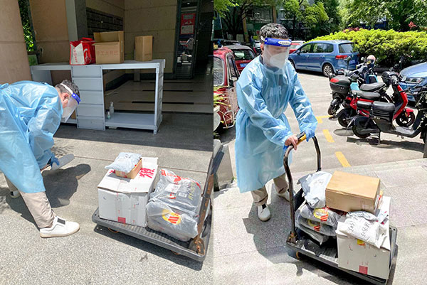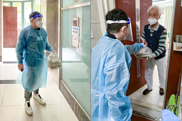 楼上有一名七旬群居老人家,平时的早饭都是在街道社区大食堂订票后,由送T5800送出去的。住宅小区封控后,送T5800只能将宝特瓶放在大门口,再请住宅小区里的义工帮送给老人家。胡冯巩和楼上的另三位义工沈燕、沈石怡积极主动揽下了这个活,也加入到外卖的队伍中,3位党员轮流每天给老人家外卖,从早到晚,至今早已送了二十天。