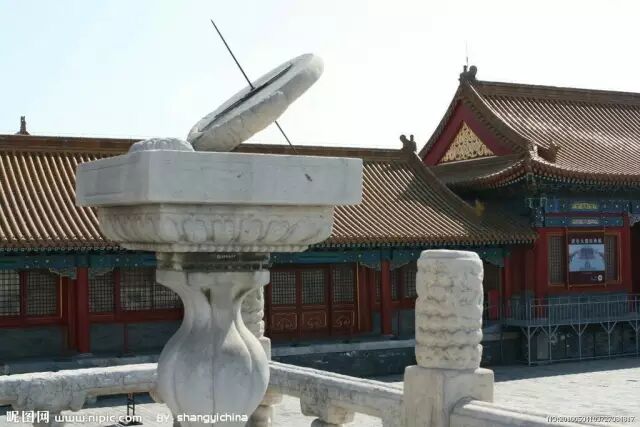 由于北京的纬度位置高于北京,所以从相片中可以看出,故宫中晷与地平面之间的夹角比北京的要小一些。
