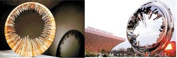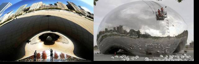 左图为芝加哥云门浮雕,右图为新疆克拉玛依大油泡浮雕。